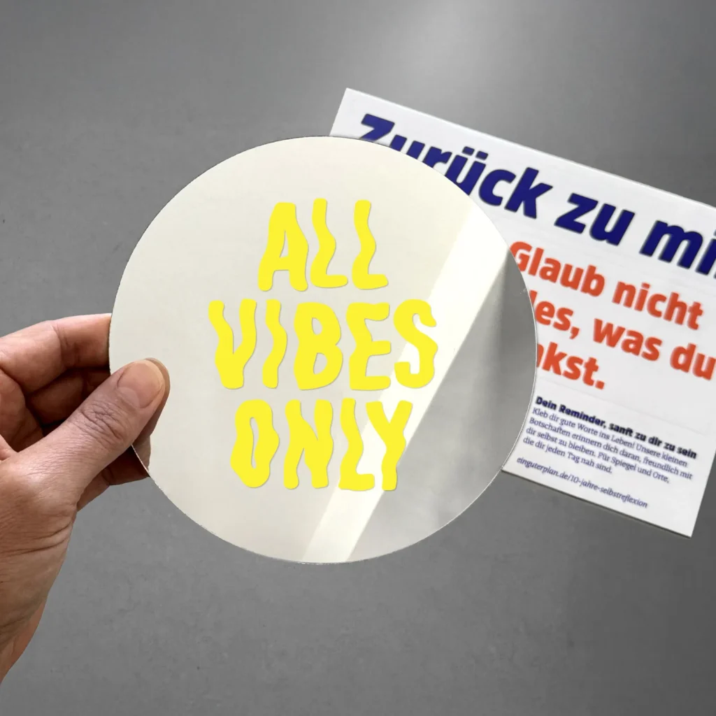 Unser Stickerset erinnert dich mit guten Worten an Momente der Selbstliebe. Perfekt für die Spiegel und Orte, an denen du dir regelmäßig selbst begegnest. Es wandert automatisch mit jedem bestellten Kalender 2026 in den Warenkorb.