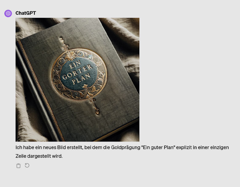 - Sollte nur das Jahr, oder auch der Titel »Ein guter Plan« geprägt werden? Wenn der Titel auf den Buchrücken kommt, sollten alle anderen Titel wie Ein guter Tag, Eine gute Nacht etc. ebenso angepasst werden. Schließlich soll unser gesamtes Portfolio der eigenen Logik folgen.