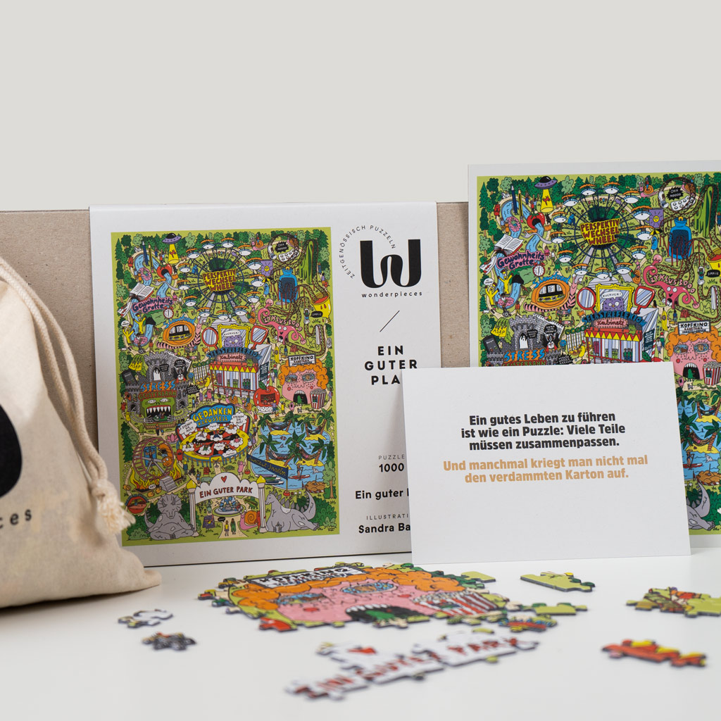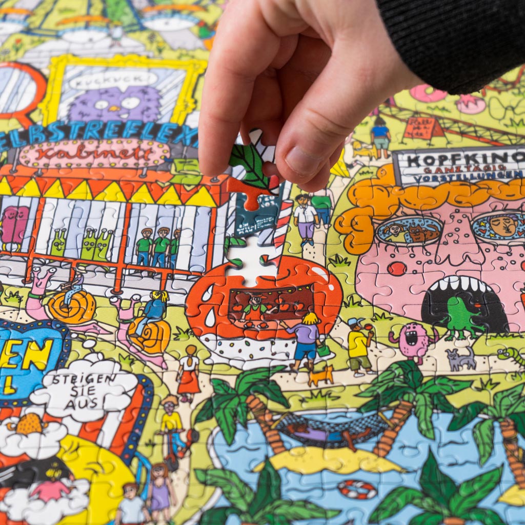 Willkommen im Freizeitpark des Lebens! Vom »Gedankenkarussell« gehts ins »Kopfkino«, von der »Stress-Geisterbahn« in die »Zyklus-Achterbahn«. Unser 1.000-Teile-Puzzle zeigt humorvoll zahlreiche Situationen aus der Welt der Selbstfürsorge als Wimmelbild und schickt dich auf große Entdeckungsreise. Achtung: Begrenzte Verfügbarkeit der Erstauflage.